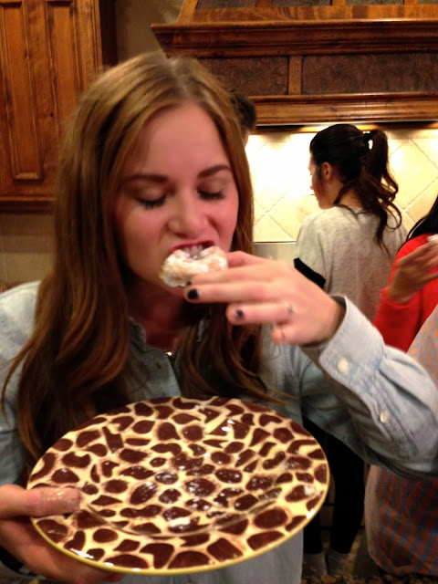 my mom makes the best homemade donuts, ever. when we were little we would have a neighborhood halloween party where my mom would make them for everyone. Now it is so hard to get the family together all at once, she had to wait for the sunday after halloween. she only makes them once a year and they are such a treat for all of us. her homemade donuts are for sure the way to get all of her kids home!